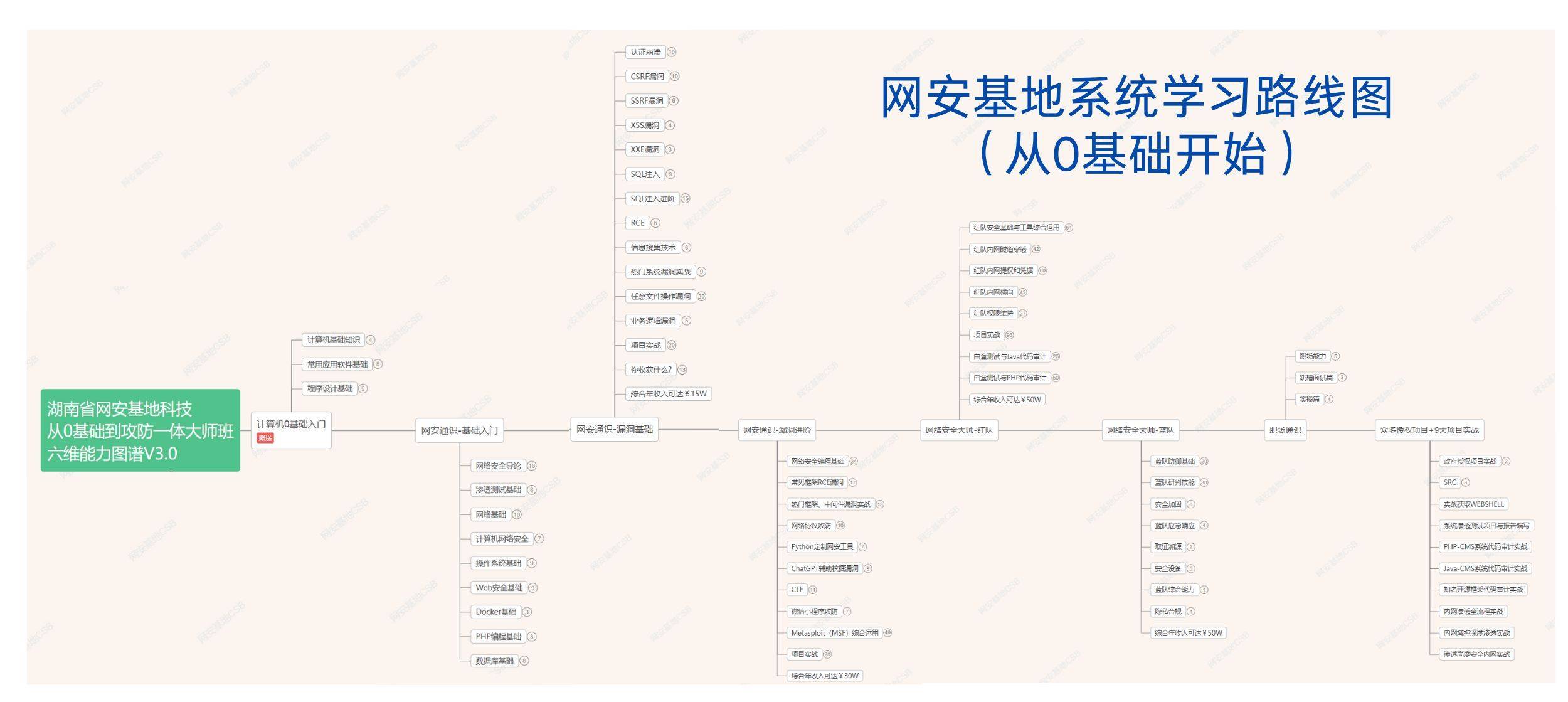 湖南网安基地,一家专注网络安全领域的教育型科技公司,是有信用背书的正规机构。湖南九成以上的高校都跟它建立了合作办学,2023年国家新一代自主安全计算系统产业集群正式授牌“网安人才培养基地”给湖南省网安基地科技有限公司。而且2023年获得长沙市国链安全可靠计算机产业促进中心的正式投资。线上线下课程体系不一样,这是线上的,可以参考一下