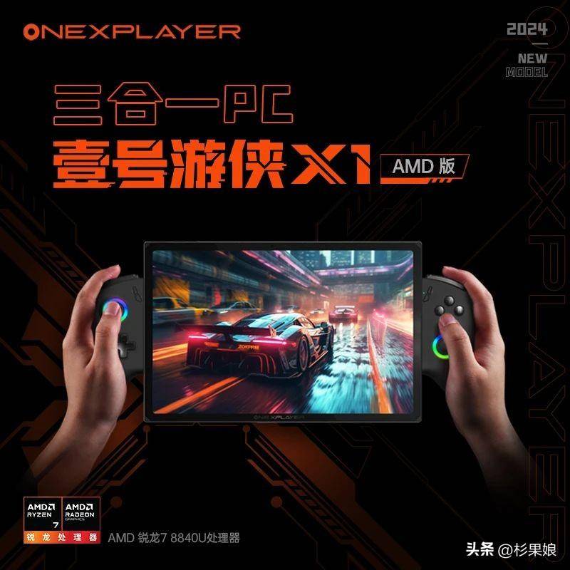 本次发布会除了正式发布壹号游侠X1 mini,OneXPlayer创始人王琳还向大家详细介绍了壹号游侠X1 AMD版,这款采用10.95英寸屏幕的三合一PC新品,这款机器是今年初发布的壹号游侠X1全新处理器版本,与壹号游侠X1 mini一样搭载了AMD锐龙7 8840U处理器,此外其他配置与壹号游侠X1 Ultra版基本一致,磁吸键盘、手柄、手柄基架等专属配件两款处理器版本的X1均可通用。