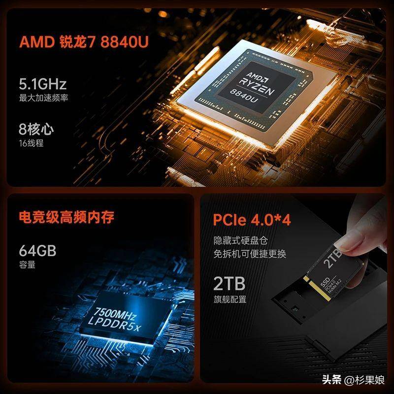 它搭载了AMD锐龙7 8840U处理器,集成AMD Radeon 780M核显,这一高性能处理器能够为电脑提供强大的计算能力和快速的数据处理能力,无论是处理日常办公任务还是运行大型游戏,都能轻松应对。