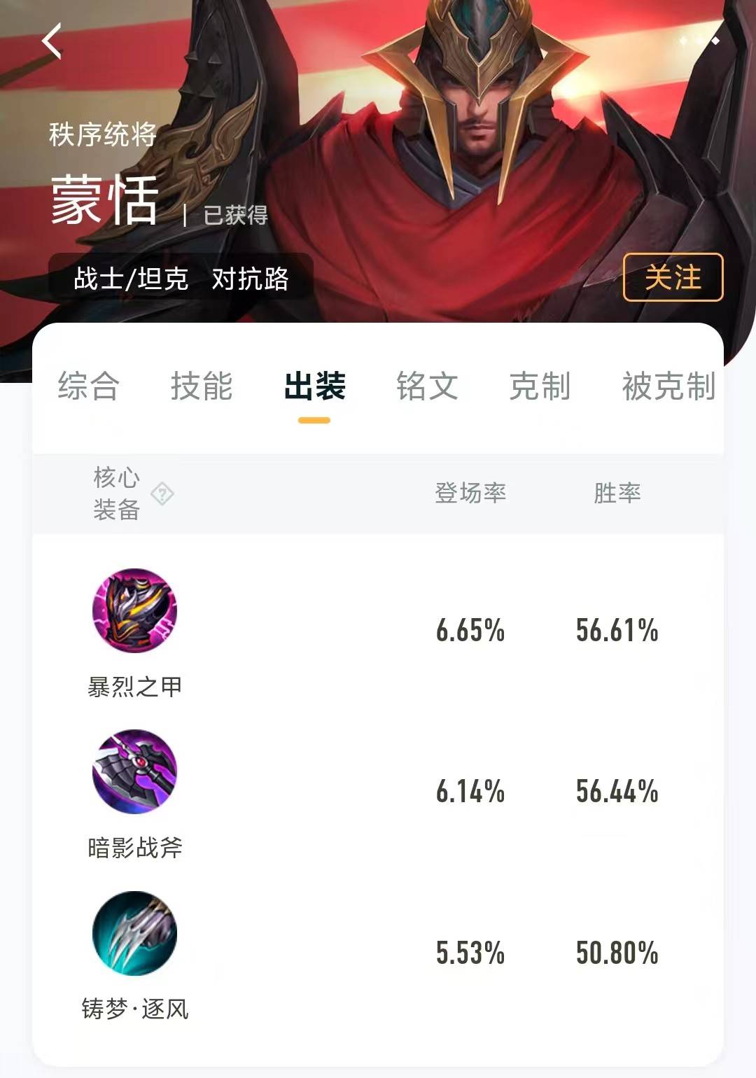 不过也能看到,这件装备的胜率其实并不算高,仅仅只有50.8%,和前面两件较为正常的核心装备胜率有明显差距,这主要是因为大部分玩家玩“鸡爪流”都是直接用自己现在常用账号,只是学到了皮毛或者是跟风浅尝辄止,所以没有太多效果,胜率自然也就维持在50%上下。