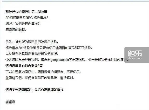 但与另一些海外游戏相比,《棕色尘埃2》的做法甚至是更有“人情味”的。出于内容原因,《棕色尘埃2》很难上线国服,而中国玩家对游戏的支持度又极高。项目组应该也了解这一点,所以十分重视繁体中文地区的运营。在这个前提下,面对退款、封号等问题时,它也没有选择“一棍子打死”,而是给出了缓冲的空间——如果只做封禁处理,结果很可能是厂商既无法追回损失,又让中国玩家失去付费意愿,进一步伤及流水。