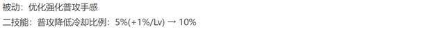 而此次的版本更新,则会重点优化强普的手感,同时,还会让普攻降低二技能的CD,从5%~10%改为固定10%,让曹操的强势期能来得更早一些。
