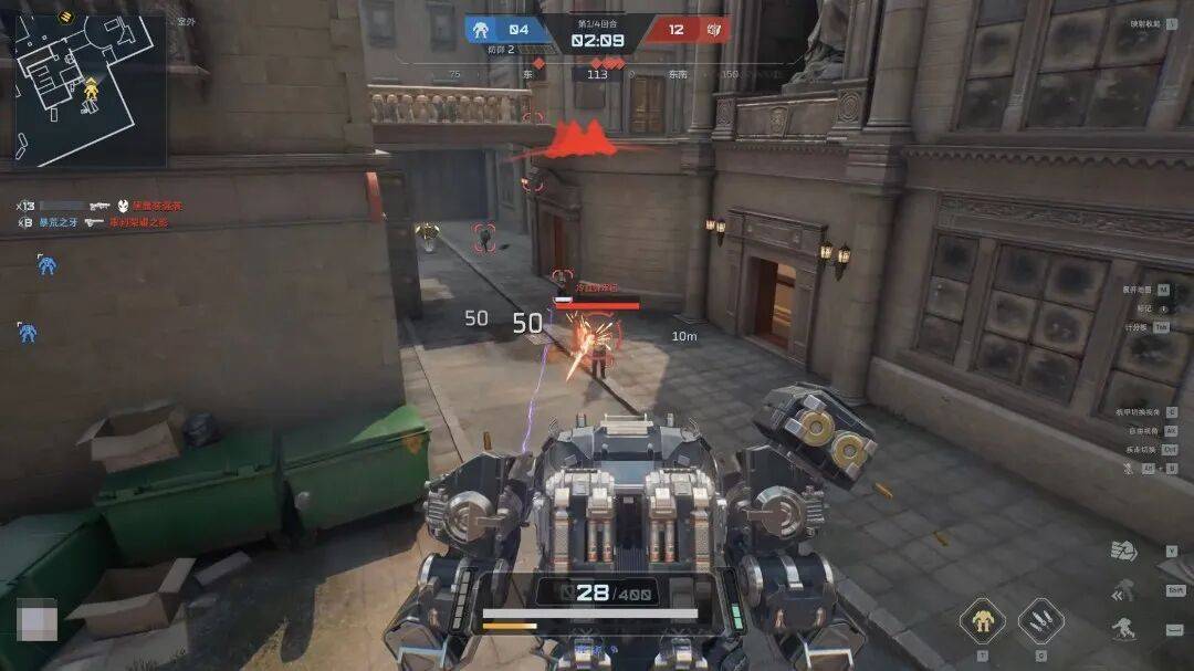 机甲战模式是PVP,但不是那种特别高压的PVP,主打机甲与人类阵营间的非对称对抗。玩家在不同的回合内轮流扮演人类和机甲,最终按输出分数而非胜负决定排名。