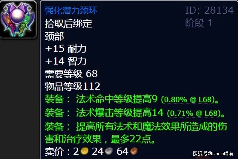 暗影迷宫煽动者布莱卡特的强化潜力颈环,核心保值的原因就是在初期极其圆润,绿字面板集齐了命中、爆击与法伤,智耐在前期来说也不算低,真的是左手吊打莫罗斯的无尽怒火项圈,右脚横踢马克扎尔王子的灵魂窃取项链,你完全有理由等风暴要塞宝珠项链再更迭,必刷的蓝色超模项链了!