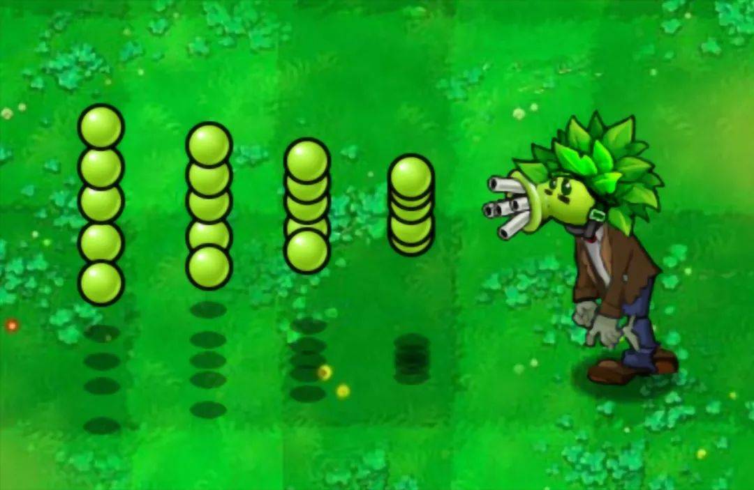 狂野机枪僵尸则是一个疯狂的输出机器,它每次能够朝五个方向,喷射出共计25颗豌豆,让这个花园成为豌豆海洋。