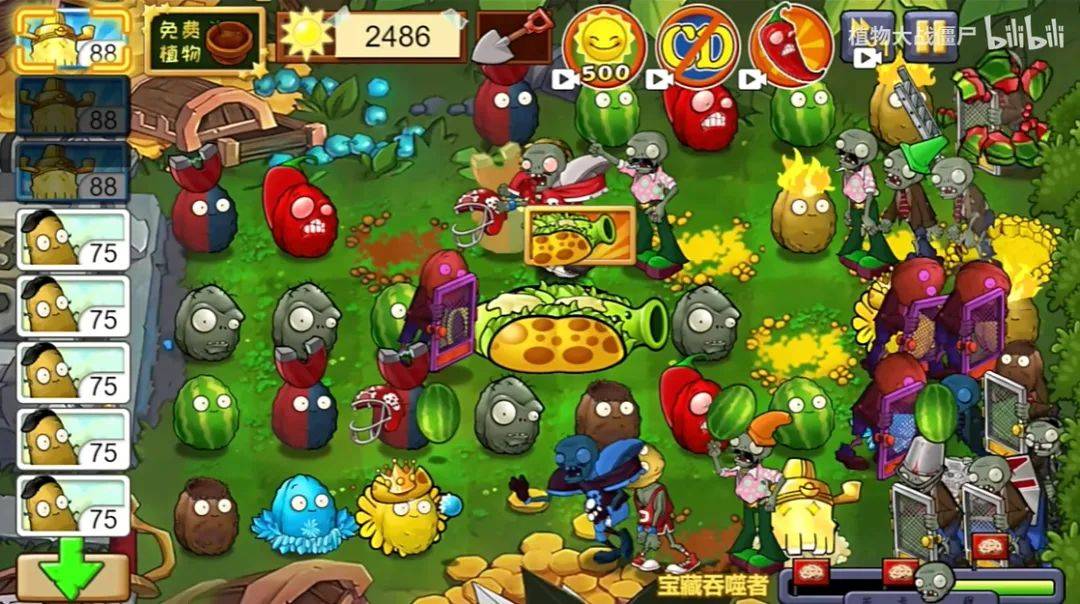 游戏中也有许多的奇怪植物,比如将种子和钻石融合到一起的钻石种子,可爱又抗揍的坚果存钱罐,输出能力极强的近战坦克忧郁菇,能打出夸张输出将寒冰射手和猫猫草合二为一的寒冰香蒲等。