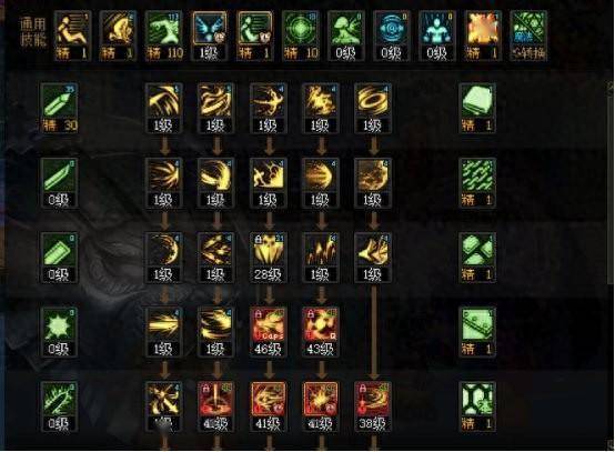 暗武器精通选一个自己武器类型点满,其他主要被动和主动BUFF全满,无色除了暗劲爆发都能全满,非无色点满冥魂珠,禁魂斩TP点1级作为输出用,要蹭无敌的话可以不点TP,主流依然是9保邪影升龙斩,排列方面暗黑溯洄斩的地位提升到和斩龙破一致,所以冥魂之陨放4阶,破魂斩换到斩龙破排列的4阶,另外由于灭魂封魔斩给了TP放在上排作为合格的爆发向技能使用,下排拖CD排列由黑暗明王阵和幽魂剑共同组成,黑暗明王阵放5阶手感好。加点一般有SP多余,可以看喜好随便加,反正不会非常影响大伤害趋向。