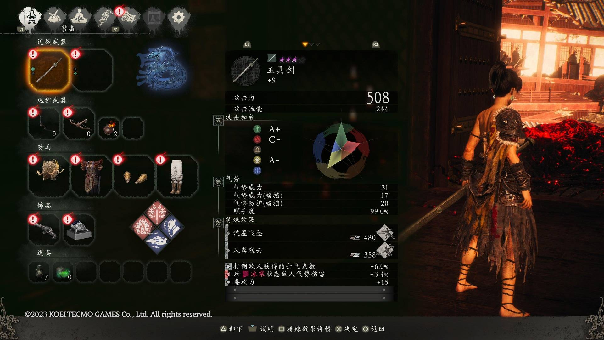 · 武器还额外囊括与气势相关的加成,关系着玩家格挡时气势损耗和攻击时敌方气势削减等等;