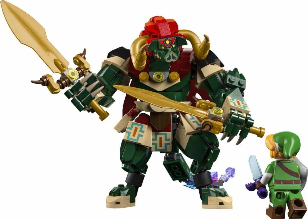 加侬多夫人仔无疑是焦点——采用全新发型零件,配有专属肩甲和一件双面印刷的华丽布质披风,威严尽显。这也是乐高塞尔达系列中首次出现加侬多夫人仔。