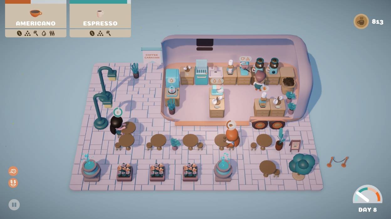 游戏名字直译为:咖啡大篷车。实际上游戏中的内容不只是咖啡,还有茶和冰激凌(未来放出)等内容。游戏体验比预期的要有意思一些,游玩前建议保持平常心态,或许会有更多的惊喜。