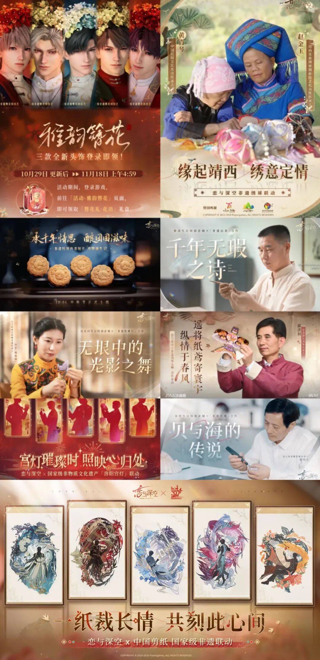 更进一步,《恋与深空》将情感表达延伸至文化层面,开创性地尝试“非遗合作”模式。两年间,已经进行了九次非遗合作活动。
