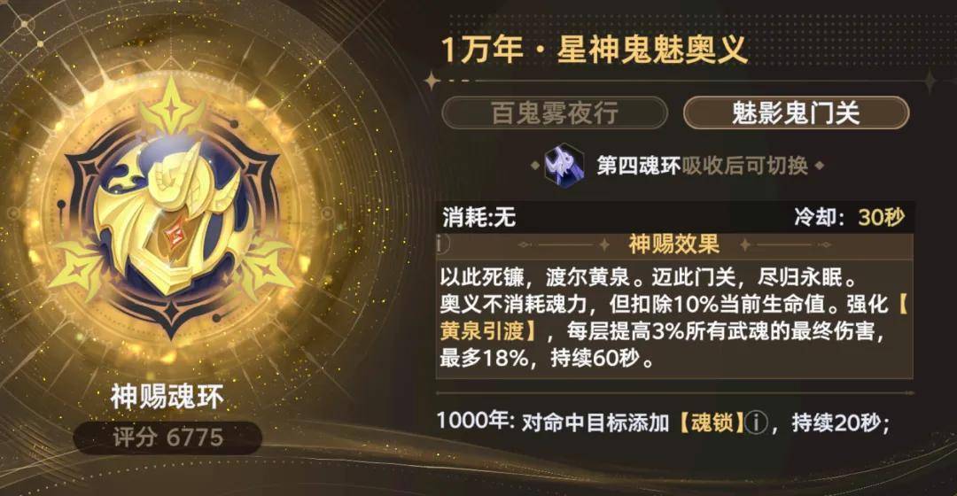 最后则是此次争议最大的鬼魅神赐魂环,其所带来的综合提升幅度是目前所有的防控辅角色中相对最高的一个了,所以很多朋友也在思考,那我是不是可以考虑搞一搞呢?而且经过实测对比,鬼魅的神赐魂环可以让鬼魅在黄色4星练度时就超越红3星的宁荣荣,这岂不是香爆了?但即使如此,维一个人也不建议绝大部分的朋友去兑换这个神赐魂环,原因如下: