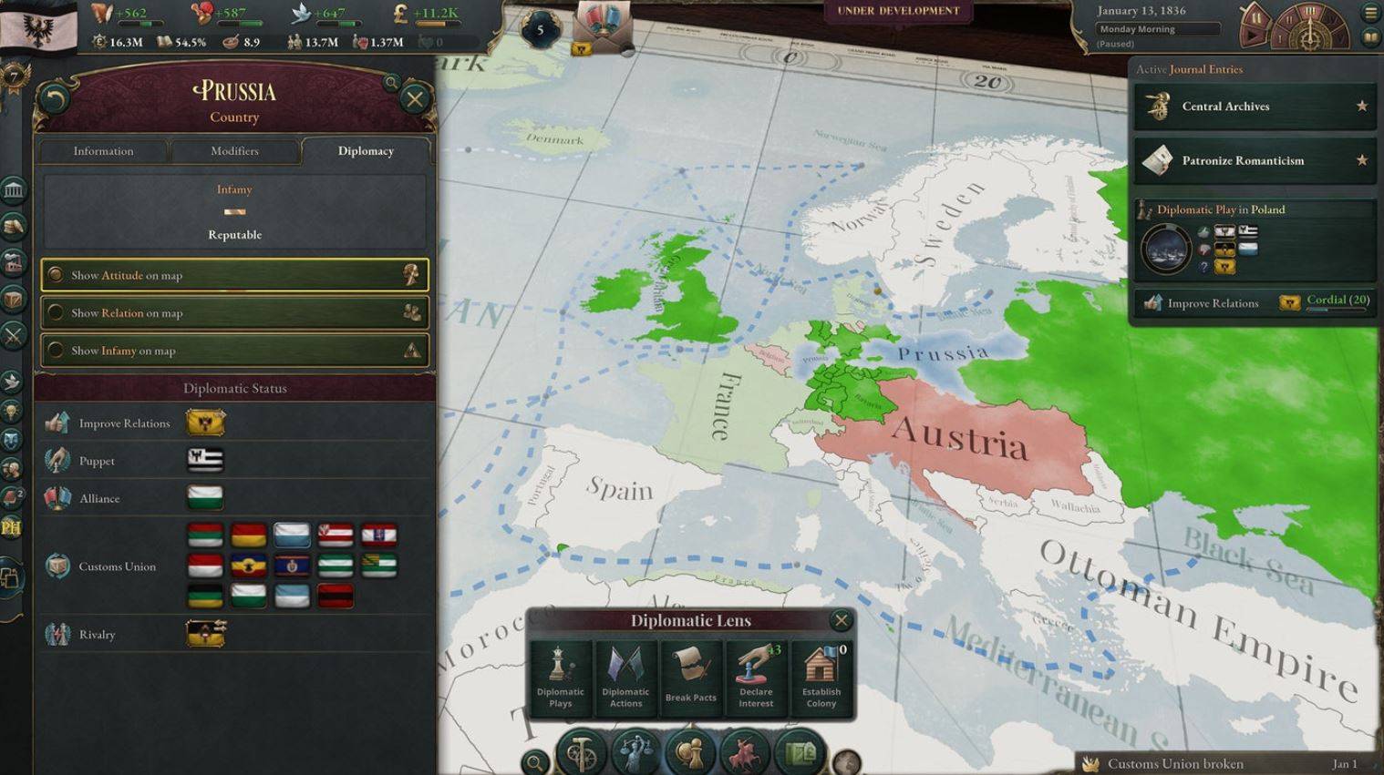 因此如果你想,譬如说,建立一个自由民主的社会,你就需要在几个鸡蛋上跳舞。激怒一个强大的利益集团,如贵族,可能会在游戏早期完全破坏你国家的稳定,因此你必须设法削弱他们的权力,与此同时却又不能公开与他们作对。