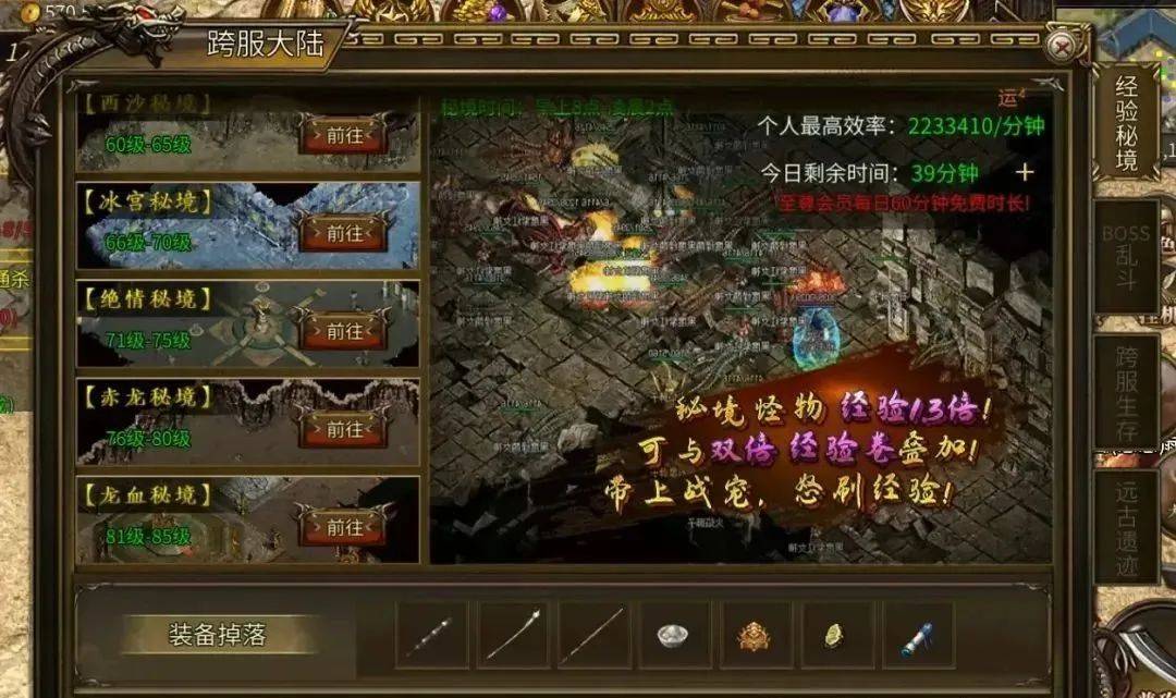 玛法大陆的地图极为广阔,玩家能够在此尽情冒险,所有的副本皆可尽情挑战。只要能邀请更多玩家加入,便能收获更多的装备与材料,刷图打怪充满热血与刺激。道具物品的类别繁多,巧妙搭配能够迸发出更强大的效用!在全新的版本里,当玩家升到 10 级之时,便可召唤出一只战宠,能够与我们并肩作战,初始战宠能同时攻击 7 个怪物,前期通过战宠一同打怪能够迅速完成主线任务升至 42 级,你的宠物还能通过升级提升属性,与战宠配合作战能够击败强大的敌人,待战宠达到 3 级时,就会变为极为强大的霸天教主!