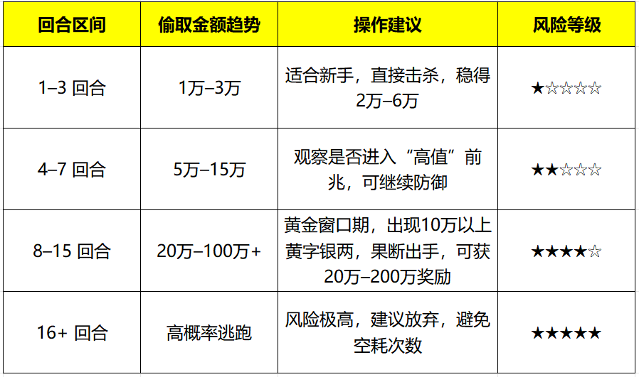 若连续两回合偷取金额相近(比如两次均为2.5万),说明灵猴即将进入“高值”或即将逃跑,建议在第3次出现3万以上时出手,该出手时就出手呀!