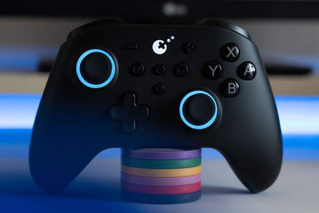 首先,从外观来看,谷粒金刚3Pro游戏手柄的设计简直是超级酷炫!传统且极具质感的黑色搭配了炫彩的灯光效果。手柄的外壳采用了高品质的磨砂塑料材质,手感细腻。