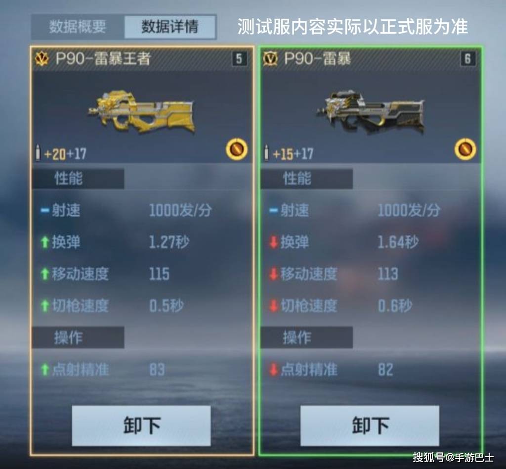 我们将P90-雷暴王者与P90-雷暴的基础性能进行对比。在伤害层面,二者基础伤害同为28点,但P90-雷暴王者的中距离伤害(10点)、远距离伤害(4点)分别比P90-雷暴高出1点。距修的优化可以使得P90-雷暴王者在中远距离对枪时打出更高伤害,压制力更强。