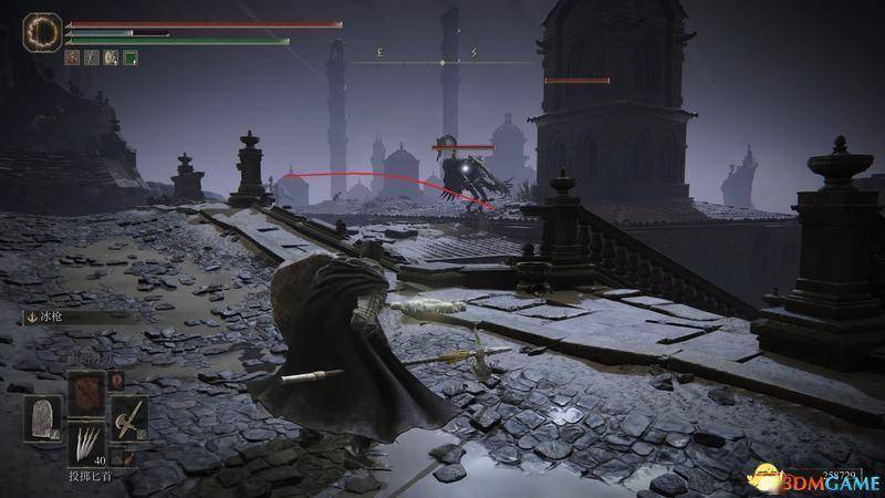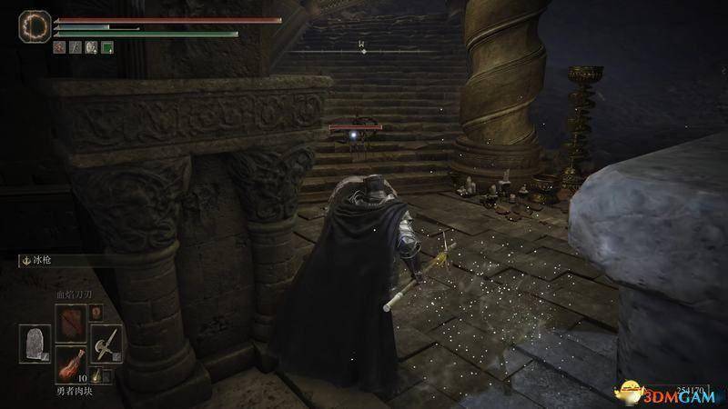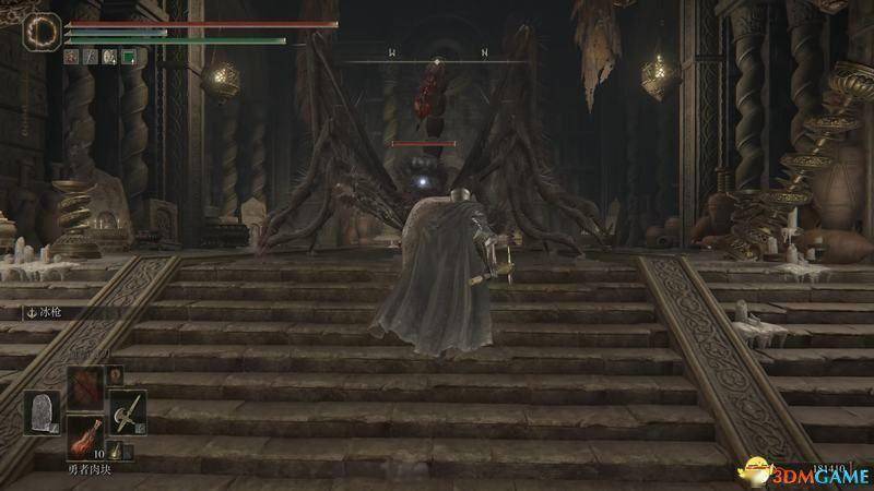 沿着楼梯上去,快要到中部平台时可以加上各种buff准备战斗。