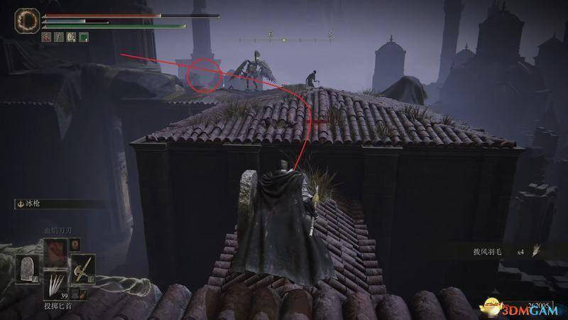一直沿着房顶向前走,注意房顶上有可以搜刮的尸体还有比较呆滞(但可能突然攻击你)的幽影。