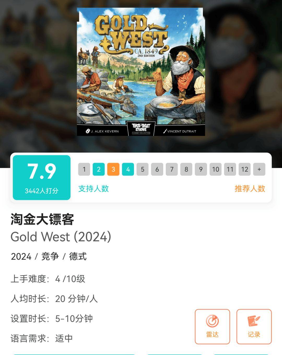 《淘金大镖客》是一款支持2-4人游玩的德式桌游。