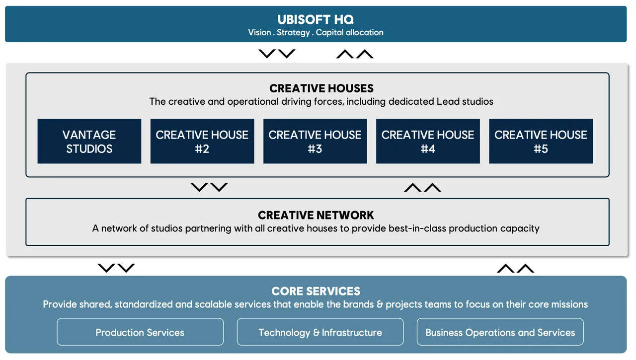育碧解释说,旗下所有游戏系列将按以下方式归入各个创意工作室(CH),其中被寄予厚望的五大创意工作室之一是 Vantage Studios,这家新兴子公司是在腾讯的资金支持下成立的。Vantage Studio将专注于扩展和拓展育碧旗下最大的系列游戏,例如《刺客信条》《孤岛惊魂》和《彩虹六号》。 此外,还将成立四个尚未命名的创意工作室,负责监督其他重要系列的开发,这些系列将根据不同的类型和玩家体验进行分类。