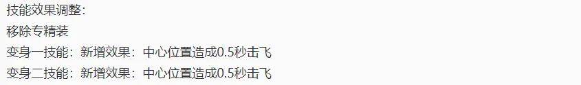 【解读】张飞同样移除了专精装,作为补偿,也给他开大后的一二技能,全都新增了中心位置造成0.5秒击飞的效果。