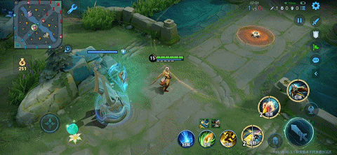 如上图所示,一技能第一段会先在原地留下印记,随后,只要让第二段的落点位于印记的圈内,就会得到强化,同时,还会根据命中敌人的数量,来减少大招CD,英雄为1秒,野怪和小兵则为0.5秒。