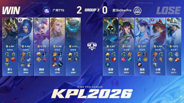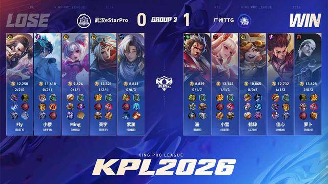 第一局比赛小楼的大司命入侵红区,但惩击早了一点点,14滴血被佳心拿下。TTG多人包过来,小楼走不掉了,送出了一血。哪吒每次打团都直奔戈娅,亮宇交出闪现过墙,依然活不下来,丝血被烫死。佳心回头还能和队友一起集火Fly的曹操,fly交出闪现想逃,张飞喷大给控制,小雪的公孙离收下人头。