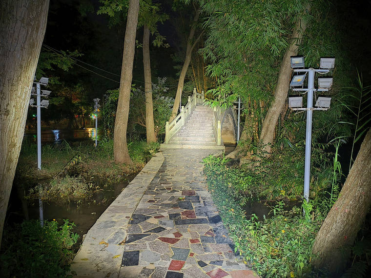 下图为高亮状态光斑情况,可以看得出中心点亮度比较高。M37 PRO配置CREE XHP50.3 HILED,最大输出3700流明,另外还有450流明 和30流明档位。 其中3700流明可以运行2.2小时,450流明可以运行5.6小时,30流明可以运行 66小时。受温控保护功能影响,电筒在开启高亮档后会启用自降档功能。后面的夜射图仅仅对3700流明做了简单测试。由图片可以看出M37 PRO属于一款聚泛皆可的战术手电。