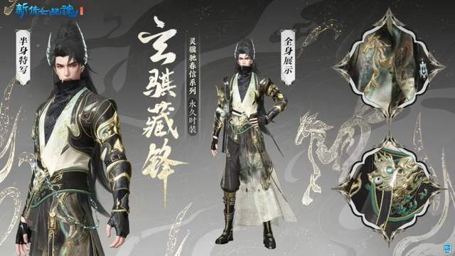 如果你更偏爱深沉有故事的装扮,那么【玄骐藏锋】就是为你准备的。它以玄黑色为主调,用苍绿和杏白巧妙点缀,整体色彩沉稳又富有层次。最大的亮点是极其利落的贴身剪裁,完美规避了冬日外观常见的臃肿感,显得人挺拔干练。它的设计灵感取自松云意象,将那种江湖侠士的沉稳内敛气质,直接穿在了身上。