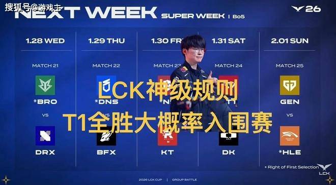 大家好,S16赛季的比赛已经正式开始了,相信绝大多数的玩家都关注了最近一段时间的对抗。Lck赛区的比赛进行的是非常激烈的,这两年lck的第一赛段对抗和其他赛区并不是特别的一样,而且这个赛季还有超级周的交手。根据多方规则的了解发现,今年lck赛区的分组对抗还是非常有意思的,尤其是对于那些强队,就算T1战队在小组赛的对抗中达成5-0全胜的战绩,也有可能需要从入围赛打起,这个规则也引来了很多网友的不满,感觉就像是官方故意安排的,为了提升比赛热度。