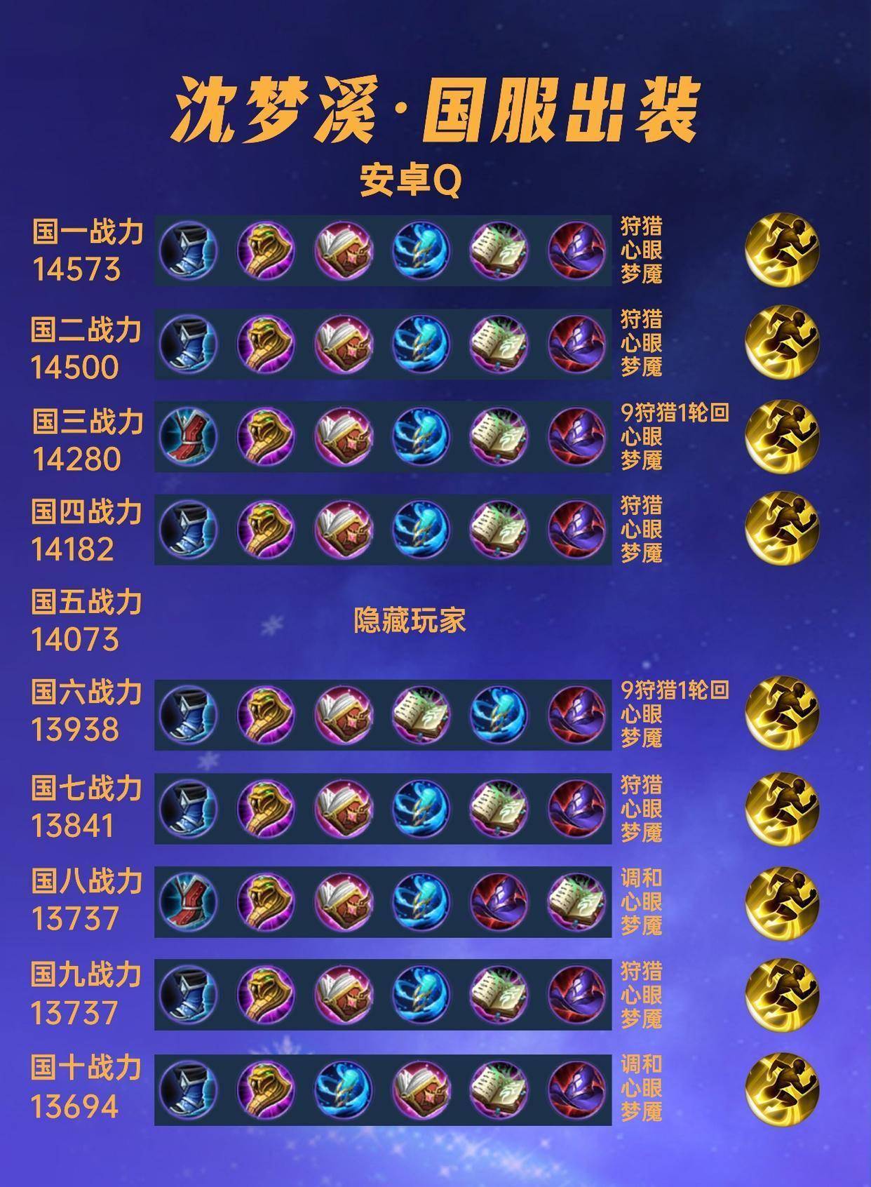 这篇文章我们来看一下40位国服沈梦溪的出装铭文汇总。