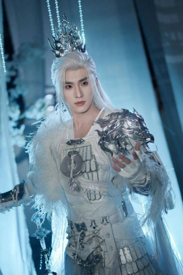 先说说这套银骥璨光。男款以银白色为主,衣服上用银丝线勾勒的骏马图案,栩栩如生,感觉随时能驰骋起来,腰封设计简洁有力,肩膀处的线条硬朗有型,看起来不怒自威。
