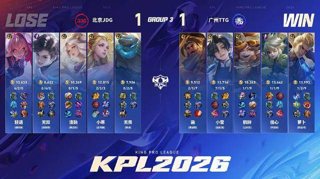 TTG3-1战胜JDG,第一阶段4-1收官,依然保留了进入S组的希望。小雪这场比赛是C麻了,给新人小寒上了一课。而无双的表现依旧是破绽级别,这不能怪观众给压力。