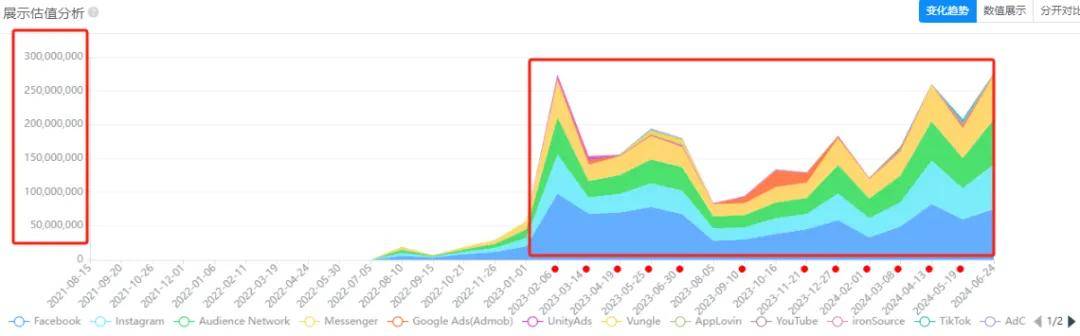 《Cash Tornado™ Slots》目前依然维持着不错的下载量表现,与投放密切相关。广大大数据显示,该作自测试初一直维持着较强的投放力度,安卓端与苹果端严格去重后投放的创意素材数分别为6.8万及2.5万。今年初开始,投放估值明显再次拉高,上个月安卓端严格去重后创意素材达4041,苹果端则为1174。