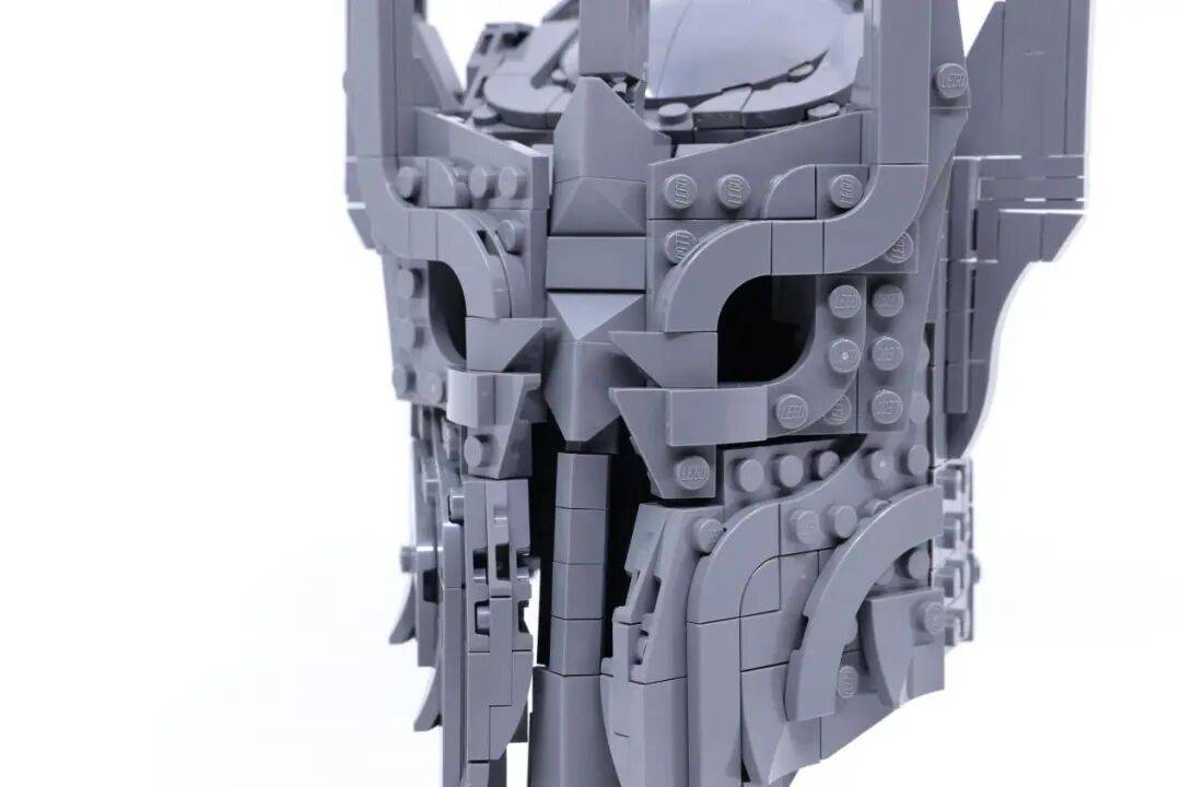 从正面看去,模型对“虚空”的刻画尤为出色:眼窝的深邃、鼻孔的凹陷,以及面部轮廓向内收紧的线条,共同传递出索伦特有的威严与压迫感。这些电影中的经典元素,被成功地转化为了乐高语言。