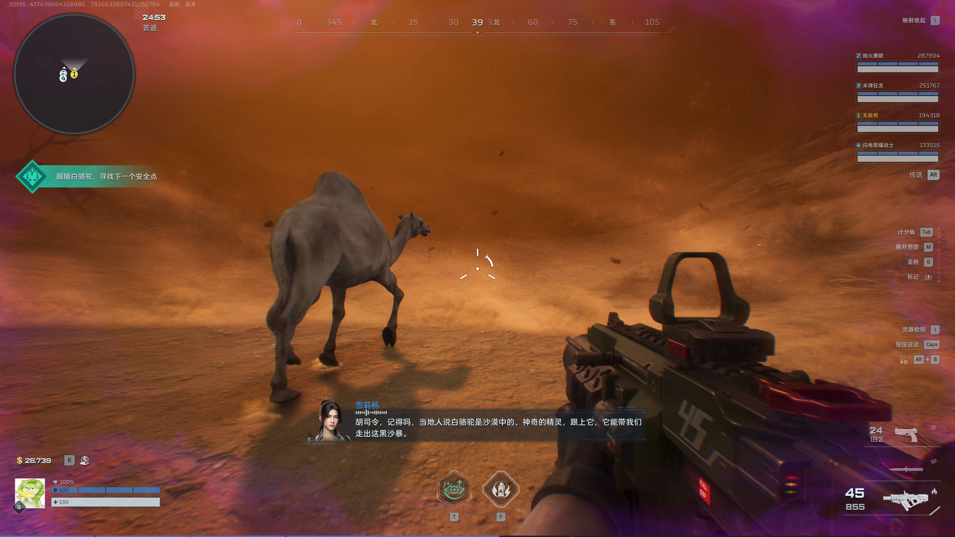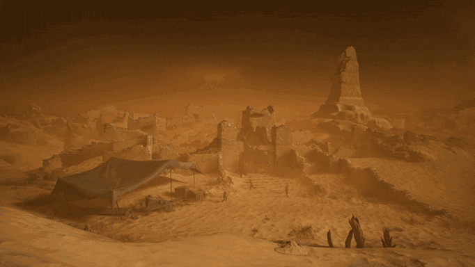 “精绝古城”里面有个任务让人记忆犹新:玩家需要跟随“白骆驼”穿越沙尘暴,在这一过程中血量会不断下降,还有敌人时常出现骚扰,漫天黄沙中白骆驼的身影时隐时现,经常是只剩一丝血皮才赶到安全区域,紧绷的神经放松的那一刻,成就感如潮水般涌来。