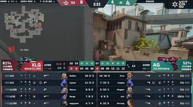第8回合AG回防A点没有打赢,XLG在残局处理还是非常的稳的,XLG继续拿分。