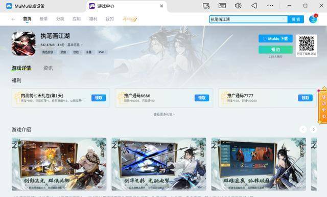 启动模拟器,在游戏中心搜索“执笔画江湖”,点击下载游戏。