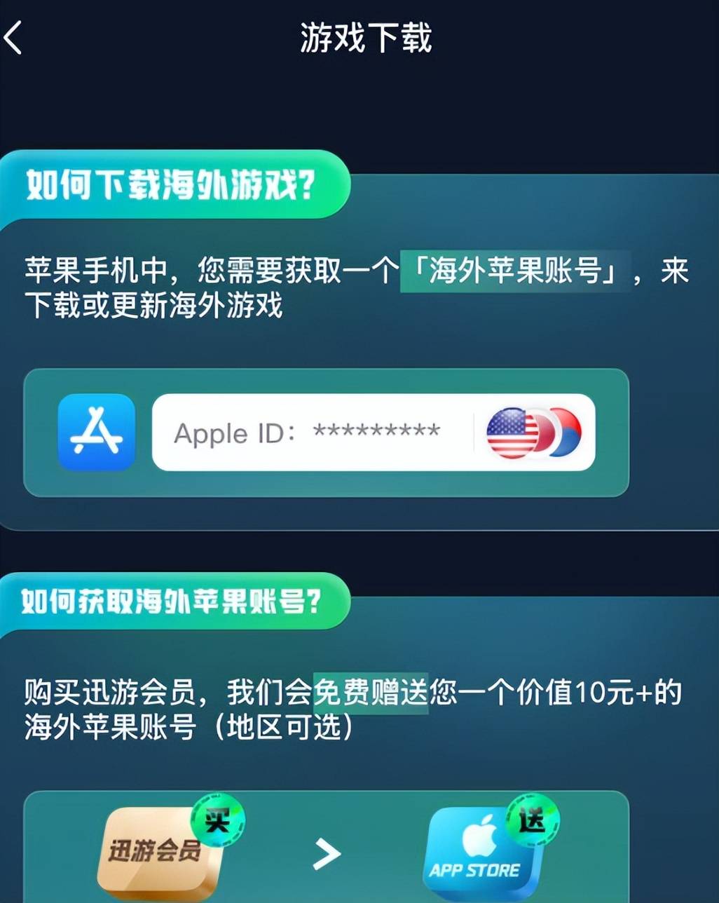 2:下载安装之后,关键的来了,在迅游加速器APP首页的“游戏下载”页面获取海外Apple ID,有了ID之后,再更改苹果账号,然后进入APP Store,直接搜索“星际战甲Warframe”就可以下载安装。就多了一个更换ID的事情。