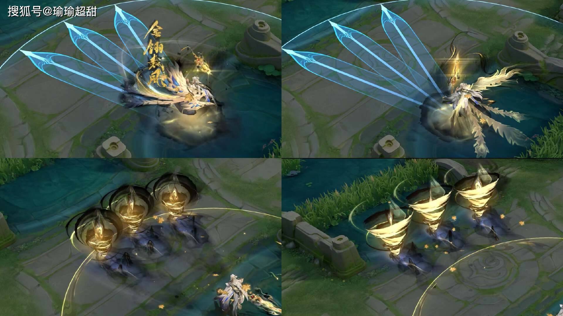 然后再来看一下三技能,光信的三技能依旧使用的是龙卷风特效,只不过有水墨风格,以金黄色为主,但是在蓄力的时候,光信会有凤凰元素,比如说凤凰展翅的那种效果,包括凤凰的尾部,而且一开始还会有文字特效。