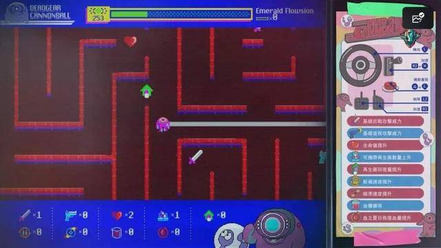 比较有趣的玩法在人物属性成长和战斗时可使用道具两类,人物属性成长需要花费战斗获得的钱(翡翠),但不同于传统技能树,取而代之的是一个类似吃豆人的小游戏,玩家可以自由选择路线,并随时重置。