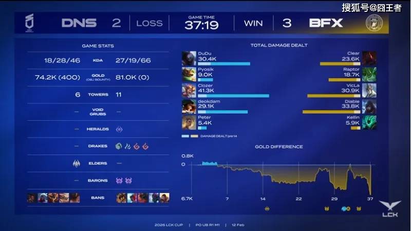 结果第二局比赛,BFX打出了碾压局。2分钟:龙龟gank下路配合队友拿下一血;5分钟:扎克gank下路配合自家队友击杀对方双人组;8分钟:Raptor扎克再次来到下路抓死对方双人组;14分钟:Peter芮尔团战逛街,BFX击杀DNS双c打出零换二;21分钟:DuDu武器坚毅不倒一人战至最后,双方打出四换四;26分钟:deokdam女枪配合Peter芮尔打满大招,DNS打出二换五延续悬念;28分钟:龙龟开团厄斐琉斯被对方锤石救下,BFX反打击杀龙龟随后拿到大龙团灭DNS;32分钟:DuDu武器一人拖住对方后排输出,DNS拿到远古龙打出一换五;37分钟:BFX中路开团瞬秒小火龙,随后推上高地一波结束比赛