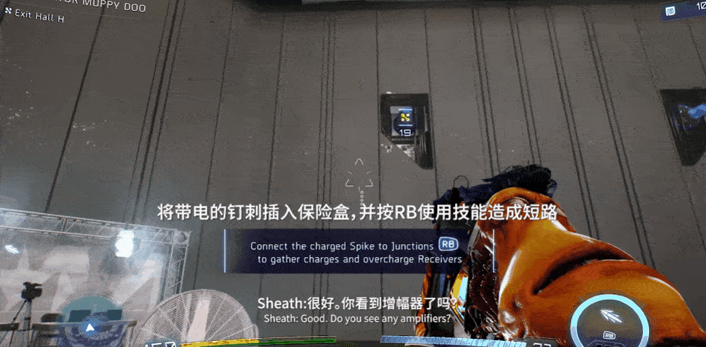 更重要的是,游戏中的每一把枪也会拥有不同专属技能,并用作辅助射击输出、场景解密等其他作用。比如,新枪“希斯”的技能便是发射可随时引导的钉刺,这既可以把敌人打成“串串香”,也可以作用于引导电路、连接钩锁;而“特拉维斯”的浮空子弹,则对于那些举着盾牌的敌人或移动重物的谜题颇有奇效。