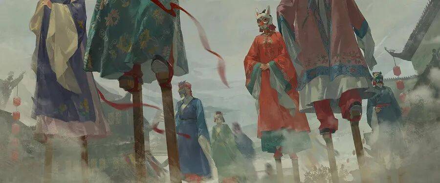 剧情中的涣州就以古徽州为灵感打造,粉墙黛瓦的徽派建筑错落有致,标志性的马头墙、精致的徽派砖雕在剧情CG中随处可见。庙会里的社火巡游、高跷精怪、灯笼市集等场景,更精准还原了徽州春节的民俗盛景,烟火气拉满的同时,也让徽派新春的氛围感历历在目。