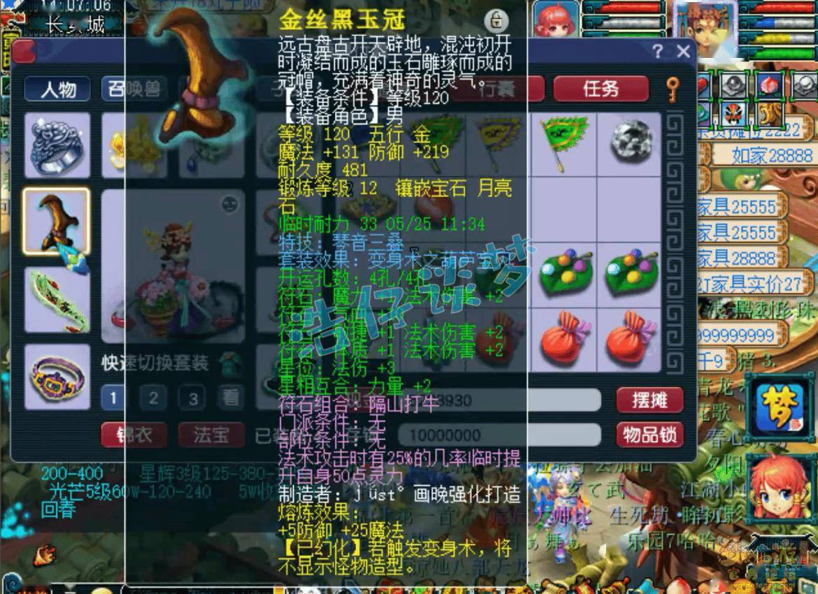 120级带琴音三叠的葫芦宝贝套男头,打了12锻月亮石!