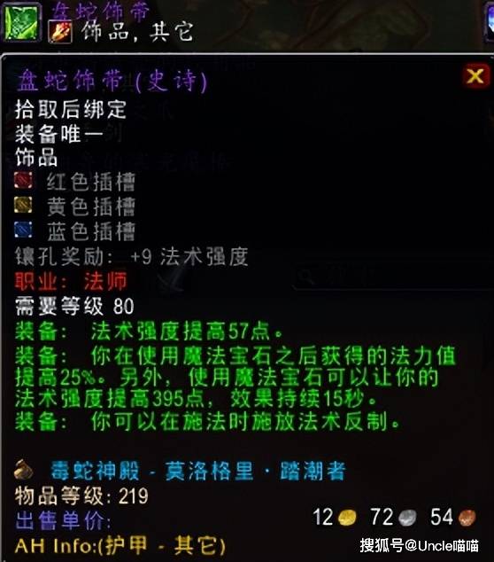 毒蛇神殿踏潮的盘蛇饰带,这一波的魔改其实并没有想象中的恐怖如斯,反而让其屈居中等偏上水平,遥想盘蛇当年,绝对是恐怖如斯直戳天花板的奥法神级饰品,而今只能说法师拿了依旧可用,但是你要说顶流真的不至于,现在基本上1000到2000金币左右能拿下,主要还是因为团队法师人群基数摆在这里,不然的话还不是分分钟底价抬走了。那么屏幕前的各位法爷,在你心目中,盘蛇饰带是不是现在必入的引发质变饰品呢?