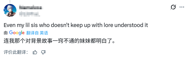 但更多的玩家表示反对,他们认为,爻光的对话虽然看起来很复杂,但核心意思非常直白,只要顺着剧情看下去,完全不影响理解。更有玩家调侃,就连自己对背景故事一窍不通的妹妹,都能轻松看懂剧情走向。所谓 “看不懂”,更多只是不习惯这种说话风格而已。
