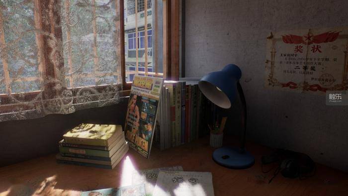 游戏最初的场景是一间卧室。房间内有物品可供查看,像金猪存钱罐、小狗闹钟。起初,我有些不以为意,直到坐在书桌前,一些物品被放大至特写——光栅卡、古朴的台灯,墙上粘贴的奖状——它们突然就化作回忆将我笼罩。原来这是一间承载回忆的房间,许多事情已经被我遗忘了。