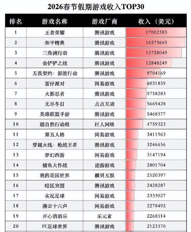这不,随着春节手游营收的曝光,真的再一次被王者折服了,8个亿,短短一个春节,一周左右的时间,真的厉害,可以看到,王者就是断层的领先,绝对的榜首地位,很强。